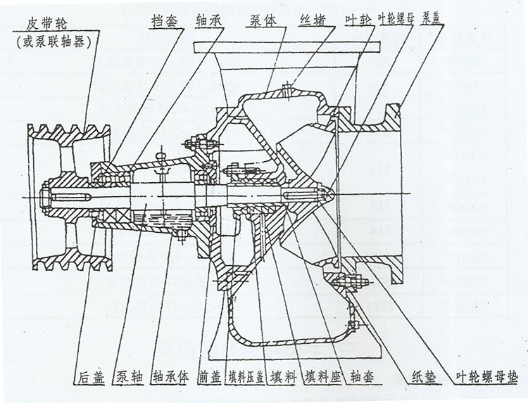 流量Q 70~8460m3/h 扬程H 3.5~22m 三、结构特点: 结构简单、使用可靠、装修方便,而且效率高、体形小、重量轻。 四、订购须知: 订货时应明确动力机的型号(功率、转数),以便确定联轴器或皮带轮的规格及精准价格。